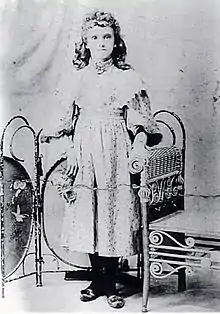 Mary Alice Smith was born near Liberty, Union County, Indiana, 25 September 1850. She lived on a small farm with her parents until (as one story goes) both parents died when she was about nine years old. Some stories say that Mary's mother died when she was very young and her father, Peter Smith, died when she was ten. Other evidence points to her father's being incarcerated at the time. Whatever the cause, she was considered an orphan. Mary's uncle, a John Rittenhouse, came to Union County and took the young orphan to his home in Greenfield where he "dressed her in black" and "bound her out to earn her board and keep". Mary Alice was taken in by Captain Reuben Riley as a "bound" servant to help his wife Elizabeth Riley with the housework and her four children: John, James, Elva May and Alex. As was customary at that time, she worked alongside the family to earn her board.[2] In the evening hours, she often told stories to the younger children, including Riley. The family called her a "Guest" not a servant and treated her like she was part of their family. Smith did not learn she was the inspiration for the character until the 1910s when she visited with Riley.[3]