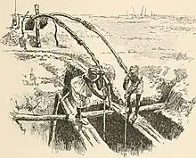 Salt panning is a crucial seasonal activity in the Rann of Kutch, producing the majority of India's inland salt. During the monsoon season, the underwater table of the Kutch is filled with saltwater. After the water recedes in October, salt workers temporarily settle and use diesel pumps to pump the saltwater into fields. Then, the natural climate conditions allow evaporation of the water, leaving only the salt crystals. Salt panning workers face severe health issues due to working in the harsh conditions in the fields continuously for 6–7 months.[7] In 2019, as a means of financially supporting the salt pan workers and promoting a move from diesel to solar-powered pumps, the government of Gujarat allowed the state to purchase excess solar power generated during the off-season. Using solar-powered as opposed to diesel pumps can reduce the cost of salt production by one-third.[8]