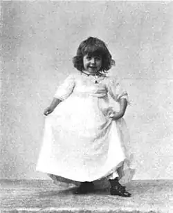 She made her stage debut (playing a baby) in Helen's Inheritance at the Madison Square Theatre in late 1889.[3] She also appeared a few times in Pine Meadow at the Fourteenth Street Theatre. On May 18, 1890, a benefit was held in her honor at the Star Theatre, reportedly earning several hundred dollars for her "maintenance and education."[5] By the end of 1890, The New York Times was referring to her as a "remarkably clever child actress" and "a child of the most refreshing unconsciousness of her marvelous ability to entertain."[5][6][7] She would not appear regularly in shows, but would put on private performances for the elite of New York, including the Astors, Vanderbilts, and Whitneys, and would also appear in charity performances.[1]