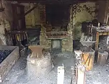 The 17th Century coal forge was recreated using evidence gathered from an archaeological dig of a seventeenth-century blacksmith shop at Ferryland, Newfoundland (built 1622) [3] and from various paintings [4] and etchings from the period. Although the forge is a re-creation, the artefacts, anvils and tools used in the forge are hundreds of years old.