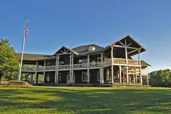 Little York Pavilion', also known as Dwyer Memorial County Park, Main Pavilion, is an historic trolley park pavilion located at Preble in Cortland County, New York. It was built about 1906, with later additions and modifications, and is a two-story Stick/Eastlake style structure, rectangular at the core, with surrounding verandahs and a jutting pavilion at each corner. The central hip-roofed section contains a single large room at each level.[2]