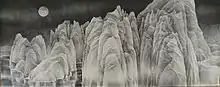 Liu’s landscape paintings have been described as “Dreamscape” by American media for their three-dimensional quality. The style merges his self-invented technique of spraying ink onto wrinkled paper collages, the boneless strokes of bird and flower painting, texture strokes inspired by old Chinese masters, and sometimes his own form of Pointillism inspired by Impressionism.