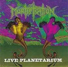 Live Planetarium is the first live album and fifth release of Australian Christian extreme metal band Mortification, released in 1993. It contains live versions of material from the band's three previously released studio albums, Mortification (1991), Scrolls of the Megilloth (1992), and Post Momentary Affliction (1993), as well as two new songs, "Symbiosis" and "Time Crusaders", and a cover of "Black Snake" by American Christian metal band Bloodgood. A video version of Live Planetarium was released on VHS in 1994 and later on DVD in 2006. A segment on Mortification's history, from the video of Live Planetarium, was included on the Tourniquet/Mortification Collector's Edition CD Single in 1994; the disc also contained songs from Mortification's Blood World album and American Christian metal band Tourniquet's Vanishing Lessons album. A studio recording of "Symbiosis" was included on Blood World. Soundmass released a reissue of Live Planetarium in 2019 on vinyl with new cover art and on CD in 2020 with the studio version of "Time Crusaders" as a bonus track; the track "Black Snake" was removed from the reissues.