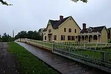 The museum is divided by Interstate 35/80 and a tractor-drawn cart transports visitors from the town (which is next to the entrance at the Visitor Center) to the west side of the museum. After visiting the 1700 Ioway Farm, 1850 Farm, 1900 Farm, and Wallace Exhibit Center, visitors return to the east side of the interstate. The 1875 town of Walnut Hill features multiple structures, including the Martin and Ellen Flynn Home and barn, both original to the site.[2]