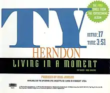 "Living in a Moment" is a song written by Pat Bunch and Doug Johnson, and recorded by American country music artist Ty Herndon. It was released in June 1996 as the first single and title track from his album of the same name. In October of that year, it became his second Number One hit (see 1996 in country music).