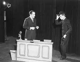 Though Triple-A had clearly criticized government decisions and supported the laborer over the "merchant," the Unit's third Living Newspaper, also directed by Losey, explicitly supported workers' organizations and angered members of the federal government. Injunction Granted, which opened four months after the close of Triple-A,[17] lampooned big business men such as H. J. Heinz and newspaper baron William Randolph Hearst[18] and called for unions to join the Congress of Industrial Organizations (CIO), a major, militant workers' association.[17] It aroused government concern during rehearsal; and Hallie Flanagan urged Losey to re-write parts of the script, but the play made it to the stage largely unaltered.[19] The piece ran on over-the-top satire and explicit bias: Heinz was introduced holding a giant pickle; Dean Jennings of the Newspaper Guild trounced Hearst in a boxing match; and a clown (played by actor Norman Lloyd[20]) served as master-of-ceremonies for the entire production, according to Cosgrove.[18] Injunction Granted drew massive criticism and closed early. Losey soon left the Unit and the FTP, though Flanagan offered to give him another chance.[21]