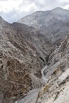 Leo is a small village in Kinnaur District. It is located at a distance of 93 kilometres (58 mi) from the district headquarters Reckong Peo on NH 505.[3] Leo village has an area of 269 hectares (660 acres).[4]:108 Leo is situated on the bank of a small right-bank tributary of the Spiti River. The Spiti River passes through a deep ravine with precipitous mountains on either side. The banks are covered with loose shingle.[2]