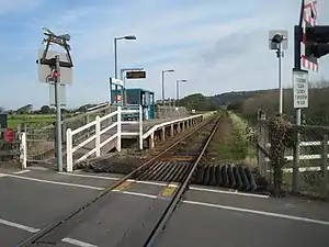 From 22 June 2020, trains did not call at the station due to the short platform and the inability to maintain social distancing between passengers and the guard when opening the train door.[1] This meant that, in the Office of Rail and Road's statistics, it became one of Britain's least used stations, recording no passengers in the year 2020–21. However, the station has since reopened according to Transport for Wales, the train operator which provides services to and from the station.[2]