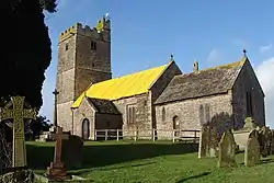 ![]() The Church of St John the Apostle and Evangelist, Llandenny (during the restoration of its roof) | |