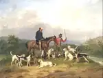 Otter Hunt - John Lloyd of Abermule and George Thomas, by Thomas Weaver ca.1817