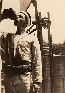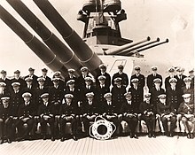 In 1943–1944 he had consecutive duty in the cruisers San Diego (CL 53) and Miami (CL 89). For outstanding service in the latter he received a second Navy Commendation Medal. He next served as gunnery, radar, and CIC officer on the staff of Commander Battleship Squadron Two, Vice Admiral Willis A. Lee Jr., USN, and in the summer of 1945 was with Admiral Lee in establishing the Operational Development Force, as gunnery, radar, and CIC officer.[3]