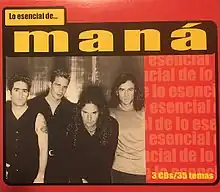 Lo Essential de Maná is a three CD box set of the first three studio albums under recording label WEA Latina from Mexican rock band Maná. Since they burst on the scene from Guadalajara, Mexico, in the early 1990s, Maná have reigned as the premier Latin rock band of our time.[1][2] Led by the powerful and passionate vocalist-composer Fher Olvera, drummer Alex González, guitarist Sergio Vallín, and bassist Juan Diego Calleros blend American power rock with Hispanic folk idioms and Afro-Caribbean rhythms.[3] This three-CD box set compilation contains the band's greatest hits, from their début album, Falta Amor[4][3] to their third album Cuando Los Ángeles Lloran.[2] A total of 37 songs from their favorites appear, including "Vivir Sin Aire," "Dónde Jugarán los Niños?",[3] and the reggae-tinged "Selva Negra." Other favorites, such as "La Chula" and "Como Te Deseo," are remixed as pop-dance numbers.