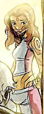 Alani relocated to San Francisco along with other former students.[3] She is later seen trying to help cheer up Colossus who is still trying to come to terms with his loss of Shadowcat.[4] It was confirmed in X-Force that she and Elixir are still romantically involved as well.