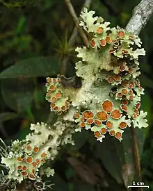 Lobariella pallida is a species of corticolous (bark-dwelling), foliose lichen in the family Peltigeraceae.[2] It was first formally described in 1822 by English botanist William Jackson Hooker, as a member of the genus Sticta. Bibiana Moncada and Robert Lücking transferred it to the genus Lobariella in 2011.[3] The lichen occurs in páramo regions of Central and South America, where it grows on twigs and thin stems of shrubs and small trees. It is the most common species in its genus. Although it typically grows in association with other lichens, its quite loose attachment to its substrate means it does not take up much surface space.[4]