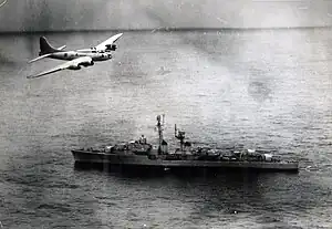 ![]() A Brazilian Air Force Boeing B-17 Flying Fortress flying over the French escort vessel Tartu, off the coast of Brazil in 1963. | |||||||