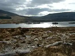 Immediately south and west of the loch is a circular cairn at Cnoc Bad Na Cleithe.[6] The first cairn measures 6 to 7 foot high and measures 63 feet on a north–south bearing at the base, by 70 feet.[6] They were surveyed on 11 June 1909 and there is no sign of a cist or chamber.[6]