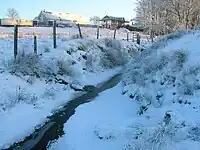 In the bottom of the loch piles or stakes of oak or elm have been found at various times and are thought that these may be the remains of crannogs or connected with fishing on the loch.[2][3] Dobie, writing in 1876 states that the loch was drained about 60 years ago, thus about 1826.[4] The 'cut' through the natural dam that once held back the loch waters below Boghall is clearly visible. The Boghall Burn runs from a drainage ditch through this 'cut'.