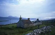 Eilean Hoan is located at the northern, seaward end of the loch and there are various small islets in the vicinity including A' Ghoil-sgeir, An Cruachan, An Dubh-sgeir, Eilean Clùimhrig, and Pocan Smoo.[4] Today it is a largely unspoilt wilderness, in a region of high rainfall and with the lowest population density in the UK.