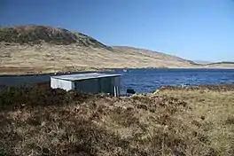 Boathouse on the shore of Lochan Sron Smeur Sron Smeur is the name of the hill nearby and possibly means outcrop (sron ) of the blackberry (smeur).