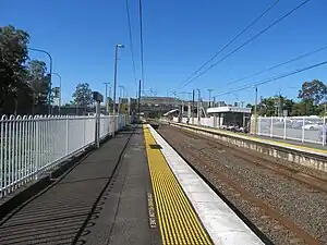 Loganlea railway station is located on the Beenleigh line in Queensland, Australia. It serves the suburbs of Loganlea and Meadowbrook in Logan City. The station opened in 1885 at the same time as the line.[1] On 21 April 1992, a second platform opened as part of the duplication of the line.[2] It is within a short distance of the Logan Hospital, TAFE college, Griffith University Logan campus, Loganlea State High School and Woolworths supermarket.