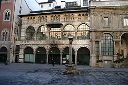The Loggia degli Osii is a historical building of Milan, Italy. It is located in Piazza Mercanti, a central city square of Milan that used to be its centre in the Middle Ages.