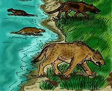 | Honanodon and Lohoodon, two small otter-like creatures in the water | |
