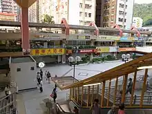 Most commercial space in the estate is housed in the Lok Wah Commercial Centre, a multi-storey open-air shopping centre between Lok Wah North Estate and Lok Nga Court. It was opened in 1985 and comprises an internal floor area of 108,510 square feet (10,081 m2).[9] It is built atop a multi-storey car park with 650 spaces, but as the complex is built within a valley the car park is barely noticeable – the shopping centre appears to be at ground level. The commercial centre and car park were originally owned and managed by the Housing Authority, but were transferred to The Link REIT on 25 November 2005.[10] The Link was criticised for abandoning the fountain at the shopping centre, and for raising rents.[11]