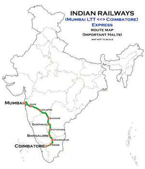 - ↑ http://indiarailinfo.com/train/map/route-mumbai-ltt-kurla-coimbatore-express-11013-ltt-to-cbe/335/466/41 Kurla Express Route map