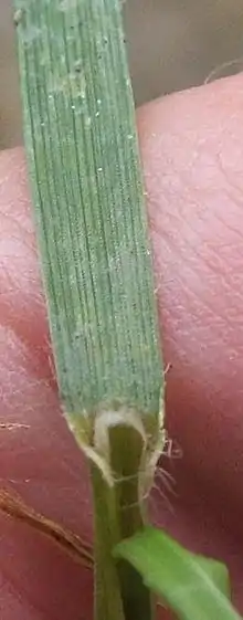 Lolium perenne, showing ligule and ribbed leaf