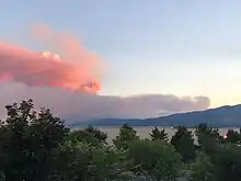 The Lolo Peak Fire was a wildfire in Lolo National Forest and Bitterroot National Forest, Montana in the United States, that began by lightning strikes on the western flank of Lolo Peak, 10 miles southwest of Lolo, Montana on July 15, 2017. The fire burned a total of 53,902 acres (218 km2). One firefighter, Brent Witham, was killed working the fire, and another firefighter was injured.[3] Two homes were destroyed, over 3,000 people were evacuated and 1,150 residences were threatened.[4] The fire threatened homes along Highway 12 and Highway 93, impacting recreational activities in the area and the communities of Lolo and Florence.