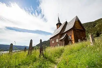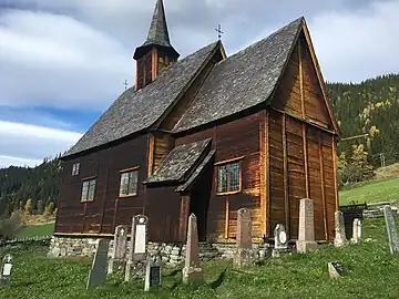 Lomen Stave Church (Norwegian: Lomen stavkyrkje) is a stave church of the Church of Norway in Vestre Slidre Municipality in Innlandet county, Norway. It is located in the village of Lomen. It was formerly the church for the Lomen parish which is part of the Valdres prosti (deanery) in the Diocese of Hamar. The brown, wooden church was built in a long church design around the year 1192 using plans drawn up by an unknown architect. The church seats about 150 people.[1][2]