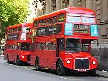 The route was not re-tendered until 2000 as no bids were received for the route. Sovereign was persuaded to put in a bid and when the new contract commenced on 1 September 2001 the route continued largely unchanged. The new mayor Ken Livingstone had been elected on a manifesto that included increasing the number of Routemasters in service in the capital. Route 13 was converted back to Routemaster operation on the change of tender with buses that had been rebuilt by Marshall.[3][5]