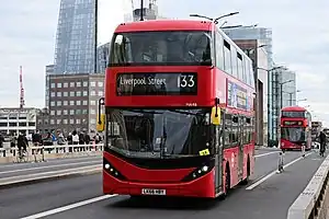 Upon being put out to tender, it was taken over by London General's Stockwell Garage on 6 January 1990 with Northern Counties bodied Volvo Citybuses.[3] Upon being re-tendered, route 133 was taken over by Arriva London's Norwood garage on 22 January 2010.[4] When next tendered, it was retained by Arriva London, with it transferred to Brixton garage on 21 January 2017.[5][6]