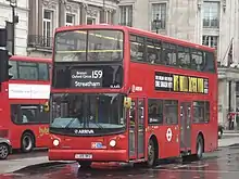 On 9 December 2005, route 159 was the last route to be converted from Routemaster to low-floor bus operation, with new Alexander ALX400 bodied Volvo B7TL double deckers taking over. The route was converted gradually from the start of service on the last day, with the last Routemaster to depart from Marble Arch arriving at Brixton Garage at around 14:40.[2][3]