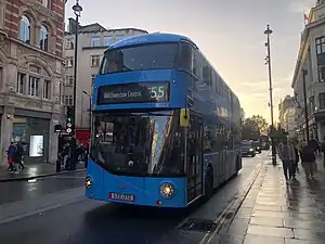 New Routemasters were introduced on 28 February 2015. The rear platform remains closed at all times except for when the bus is at bus stops.[6] On 12 October 2019, route 55 was extended to Walthamstow bus station after the withdrawal of route 48.[7][8]