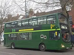 Route 84 used to reach further into London: in 1936 it ran from St Albans to Golders Green, albeit omitting Potters Bar itself by running via New Road. As a wartime economy, from May 1940, route 84 was withdrawn south of Whetstone, being diverted to Arnos Grove station instead. In August 1969 it was cut back to Barnet and diverted to New Barnet station. Operation of the route passed from London Regional Transport to London Country Bus Services in 1982.[2][4] In 1986 it reverted to being a London Transport operated route.[2]