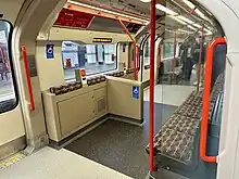 ![]() The interior of a Central line 1992 Stock after first refurbishment during 2011–2012 | |