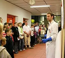 The Long Night of the Sciences (German: Lange Nacht der Wissenschaften) is an established form of public relations and science communication activity in Germany. On one night of the year, large scientific institutions hold lectures and demonstrations for the general public in order to present themselves and a general overview of their research topics. The events cover all aspects of science, from natural sciences, arts and humanities to social sciences. The public can usually visit the institutions between around 5pm and 1am on the "Long Night of the Sciences" in exchange for a fee.