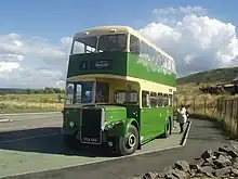 About 1944 the company was renamed Longwell Green Coachworks Ltd.[2] By 1946 the company was offering bus, coach and commercial bodies. Coach bodies were built on chassis from Daimler and Maudslay, and 29- and 33-seat buses were built on the Leyland Comet chassis.[6] The company built double-decker buses for the Bristol Omnibus Company on the Leyland Titan PD1 chassis.[7] Longwell Green sold many bus bodies on chassis with underfloor engines to South Wales operators in the 1950s.[8] For example, in 1957 Longwell Green supplied four single-deck motorbuses with Leyland Tiger Cub chassis to Cardiff Corporation.[9] Between 1952 and 1957 Longwell Green was among the companies that built bodies for high-capacity Bedford pumping vehicles known as "Green Goddesses" for use by the Auxiliary Fire Service.[10]