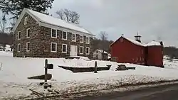 Loomis Family Farm, also known as the Loomis-Sharpe Farm, is a historic home and farm located at Oxford, Chenango County, New York. The farmhouse was built in 1832 and is a two-story, five-bay sandstone residence with a center entrance. Also on the property are the contributing dairy barn and silo (c. 1879), a carriage barn (c. 1870s), a corn crib / granary (c. 1871), a small barn (c. 1870s), a smokehouse, a spring-fed water trough, a well with a stone lid, a milk cooler, a stone horse barn foundation, and the ruins of a sugar house.[2]: 3