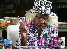 Daisy Loongkoonan (c. 1910 – 2018) was an Australian Aboriginal artist and elder from the Nyikina people of the central western Kimberley region in Western Australia. Loongkoonan was born at Mount Anderson near the Fitzroy River. Her parents worked on cattle stations, and as she grew up, Loongkoonan followed them, mustering sheep and cooking in stock camps. Later she rode horses and mustered cattle.