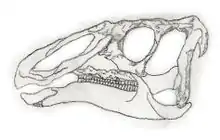 Remains of a small, poorly known perhaps saurolophine dinosaur were first discovered during the 1940s, from extensive erosional outcrops of the lower unnamed member of the Mooreville Chalk Formation (Selma Group; lower and middle Campanian) in Dallas County, west of the town of Selma, Alabama. The taxon has since also been reported from Black Creek Formation (Campanian) of North Carolina.[1] The holotype, which is housed in the collections of the Field Museum in Chicago, consists of a fragmentary and disarticulated skull and incomplete postcranial skeleton. The length on the holotype specimen has been estimated as 4.5 metres (14 ft 9 in). The genus was named by Wann Langston in 1960. It was thought to be the only species of hadrosaur from that fossil formation, until 2016 with the discovery of the primitive hadrosaur, Eotrachodon orientalis. The name Lophorhothon means "crested nose" (Greek lophos meaning 'crested' and rhothon meaning 'nose'). The type species is Lophorhothon atopus. The specific name is derived from Greek atopos, "uncommon" or "strange".