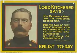 The use of Kitchener's image for recruiting posters was so widespread that Lady Asquith referred to the field marshal simply as "the Poster".[23]