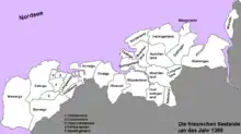![]() Lordship of Frisia 1680, divided into quarters Westergo, Oostergo, Zevenwouden, Steden | |||||||||
