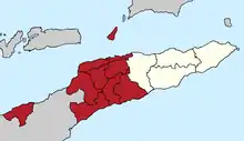 Loro Munu consists of the municipalities of Dili, Aileu, Ainaro, Manufahi, Ermera, Bobonaro, Cova Lima, Liquiçá and the special administrative region of Oe-Cusse Ambeno. Sometimes the municipality of Manatuto is also counted as part of the west.
