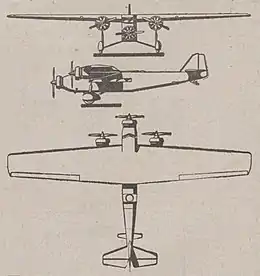 • Powerplant: 3 × Lorraine 9Na Algol 9-cylinder radial, 220 kW (300 hp) each at 1,800 rpm