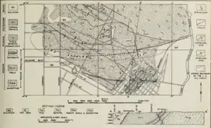 By 1961 most of the oil field was dedicated to redevelopment as a residential area, under the auspices of the Los Angeles Urban Renewal Association. At this time, 93 wells still remained active in the field, run by 22 separate companies.[2] One by one the wells have been abandoned, with the one remaining well quietly pumping behind a fence on South Mountain View Avenue.