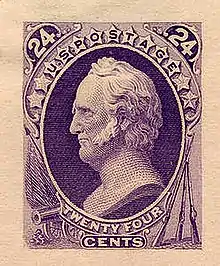 - ↑ The United States Post office did not again offer a 24¢ stamp until 1918, when it produced the first airmail issue—which also survives in a rare and valuable variant: the famous Inverted Jenny.