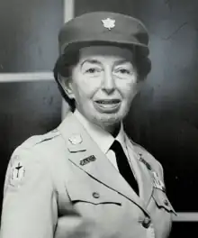 Throughout the years, Dr. Hitschmanova received many awards, including the Gold Medal from the Cross of France (1950) and the Medal of St. Paul from Greece (1952).[4] Other awards included the Canadian Centennial Medal; the Queen Elizabeth II Silver Jubilee Medal; the Republic of Korea: Order of Civil Merit; Médaille de la Reconnaissance française; United Nations Headquarters Medal and the Decoration for Order and Peace, 1945-1949 from the Netherlands. These medals added rows of ribbons to her famous home-made uniform.[8] In 1968 she was made an Officer of the Order of Canada and was promoted to Companion in 1979.[12] Dr. Lotta, as she was known, became a symbol of personal dedication, and made the Unitarian Service Committee at its well-publicised address of 56 Sparks Street, Ottawa, Ontario, a household name through her numerous radio and television ads.