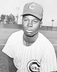 Brock made his major league debut with the Cubs on September 10, 1961, at the age of 22.[7] In his rookie season of 1962, Brock became one of four players to hit a home run into the center-field bleachers at the old Polo Grounds in New York City since its 1923 reconstruction. His blast came against Al Jackson in the first game of a June 17 doubleheader against the New York Mets and was one of two that cleared the wall in consecutive days,[5] with Hank Aaron's coming the very next day. Joe Adcock was the first to hit a ball over that wall, in 1953. Babe Ruth reached the old bleachers (a comparable distance) before the reconstruction. Brock was not known as a power hitter, though he aspired to be one.[8][9]